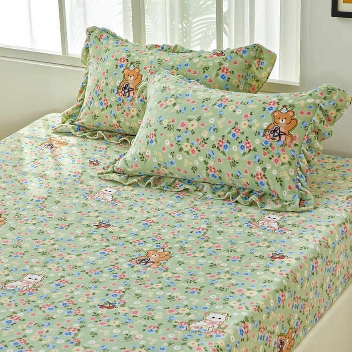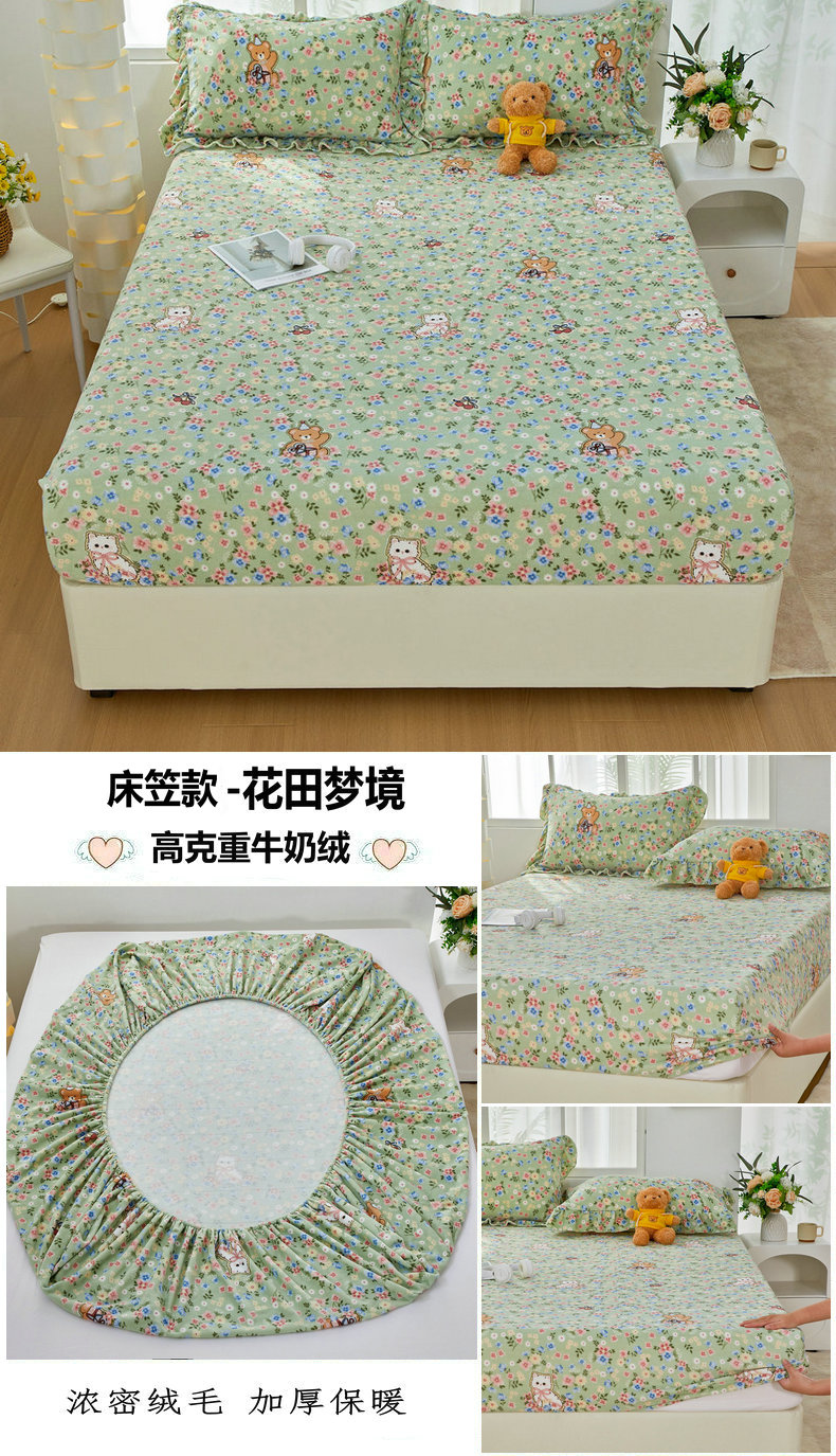 - - 2024新款加厚保暖小清新小版牛奶绒四件套